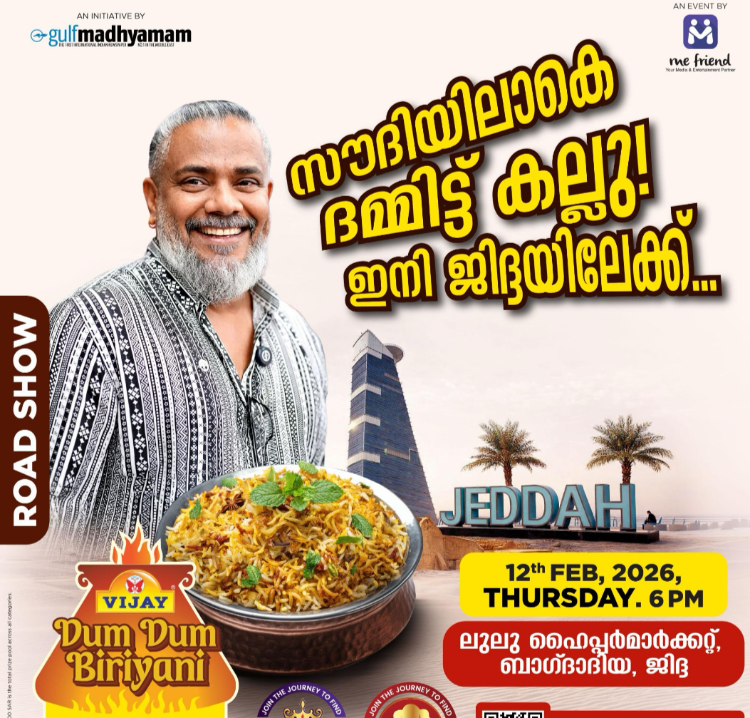 ജുബൈൽ – രാജ്യത്തെ പ്രവാസികൾക്കിടയിൽ തരംഗമായ ഗൾഫ് മാധ്യമം ‘വിജയ് ദം ദം ബിരിയാണി’റോഡ് ഷോയുടെ ആവേശം ഇനി ജുബൈലിലേക്ക്. നജ്റാനിലും അബഹയിലും ആയിരങ്ങളെ സാക്ഷിനിർത്തി പ്രശസ്ത…